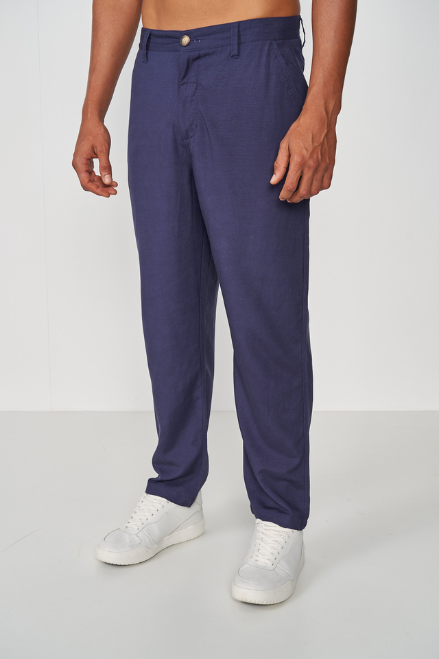 Tecido: Confeccionada em viscose e linho, a Calça New Chino Alfaiataria Com Linho oferece caimento perfeito, respirabilidade e conforto.